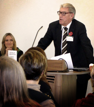 It’s a packed programme of speakers and presentations, power points and sincere deliveries – but the messages pass me by.   Something about volunteers to hold the hands of the dying, pathways to a good death, the launch of a form for funeral wishes, a film called “I didn’t want that” which I didn’t quite get.   Then Jane and I are standing by the podium, a little apprehensive now about introducing something of a more personal significance.