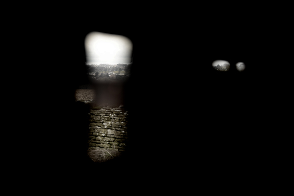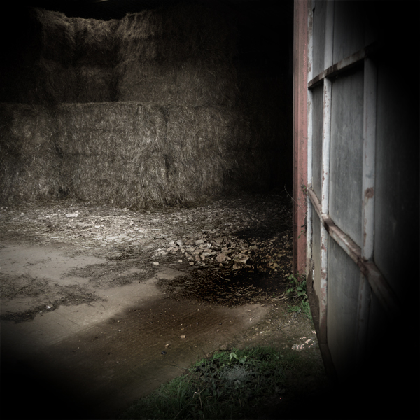 The barn is modern and  large and almost empty – to one side a stack of straw bales providing its only sense of purpose. It’s dark  with a kind of inverted light blowing through the slats at each end, casting non-shadows on a featureless concrete floor.  It’s a place without much history, and to try and conjure a Joshua moment here feels both cruel and disappointing.  But the downpour is heavy and persistant and we have no choice but to spend time here.