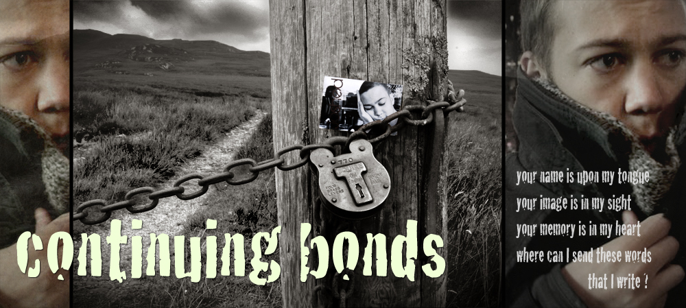 In this section of BEYOND GOODBYE we want to explore the many different ways that bereaved families find to express their loss. We have called the section CONTINUING BONDS in recognition of the new relationship that we must build with our dead child if we are in any way to remain sane.  As parents of a dead child, we are so fundamentally changed, so bereft, so lost, it is difficult to see how life can offer any rewards, but they are there.  By creating new rituals in which to mourn, by making things with which to remember, we can begin to reshape our relationship with our children and to continue the bond that we never want to break.
