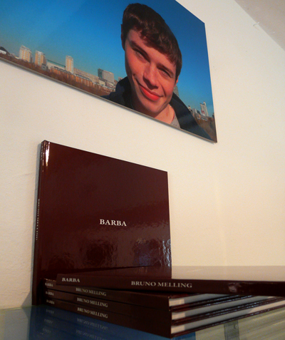 We exhibited every photograph in the Barba book which Bruno had very sweetly dedicated to his younger brother William (William was always very reluctant to have his hair cut).    This dedication is incredibly poignant to us now and it was William helped me prepare hang the exhibition.  He sorted out all the technicalities of printing, dpi’s etc, sizes and ordering….a mammoth task for 40 photographs and without his calmness and constant support it absolutely would not have happened.  Bruno’s older sister, Bella, and his girlfriend Saffia both helped out  with all the work of putting on a major show in Central London, invigilating with us every day and being on hand to explain the exhibition to visitors and to tell Bruno’s story.